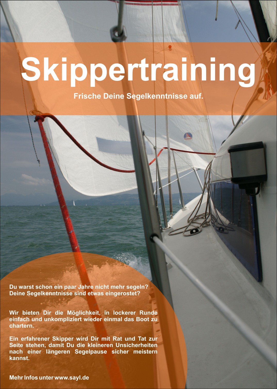 haben wir genau das Richtige: Das SAYL-Skippertraining! Für Fragen und Details wendet euch bitte an info@sayl.de oder sprecht uns bei nächster Gelegenheit auf dem Bundeshaus direkt an. Wir freuen uns auf viele motivierte Teilnehmer! |